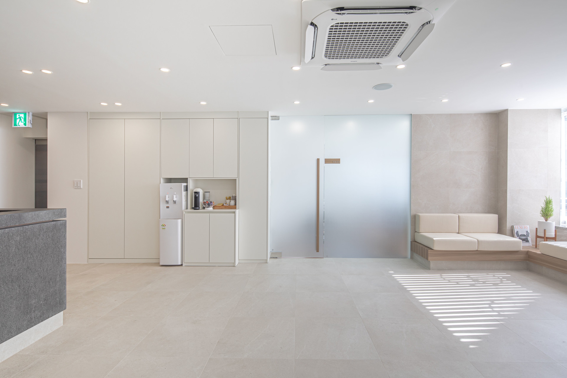 하지만, 지인의 소개로 만난 원장님의 의지는 분명했다. 외부에서 원장님의 근무 여부 등의 일상이 창으로 통해서 보여지기를 바라셨다. 모든 일에는 장단이 있듯이 4계절의 특성이 뚜렷한 우리나라에서 통창을 등지고 근무를 하는 일이 쉽지 않음과 나름의 대책을 공유하며 이 프로젝트를 시작했다.