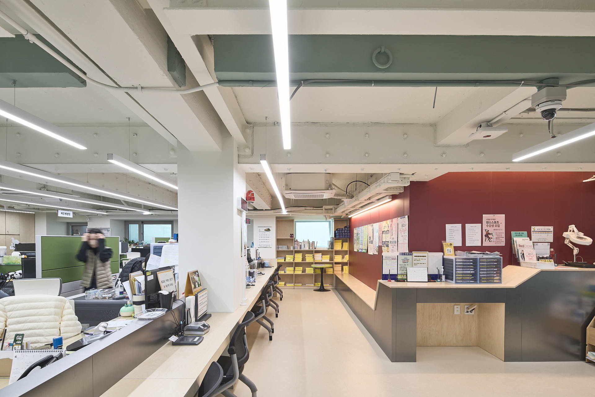 The first visit to the building was memorable. It was a day with gentle spring rain, and the purpose was a meeting in the third-floor meeting room due to another project. The staircase next to the main entrance was narrower, lower, and older than expected, giving the feeling of traveling back to the 1980s. However, opening the door to the third-floor meeting room revealed bright light and a view of the sloped-roof houses through the windows, eliciting the exclamation, "This is indeed Jongno-gu."