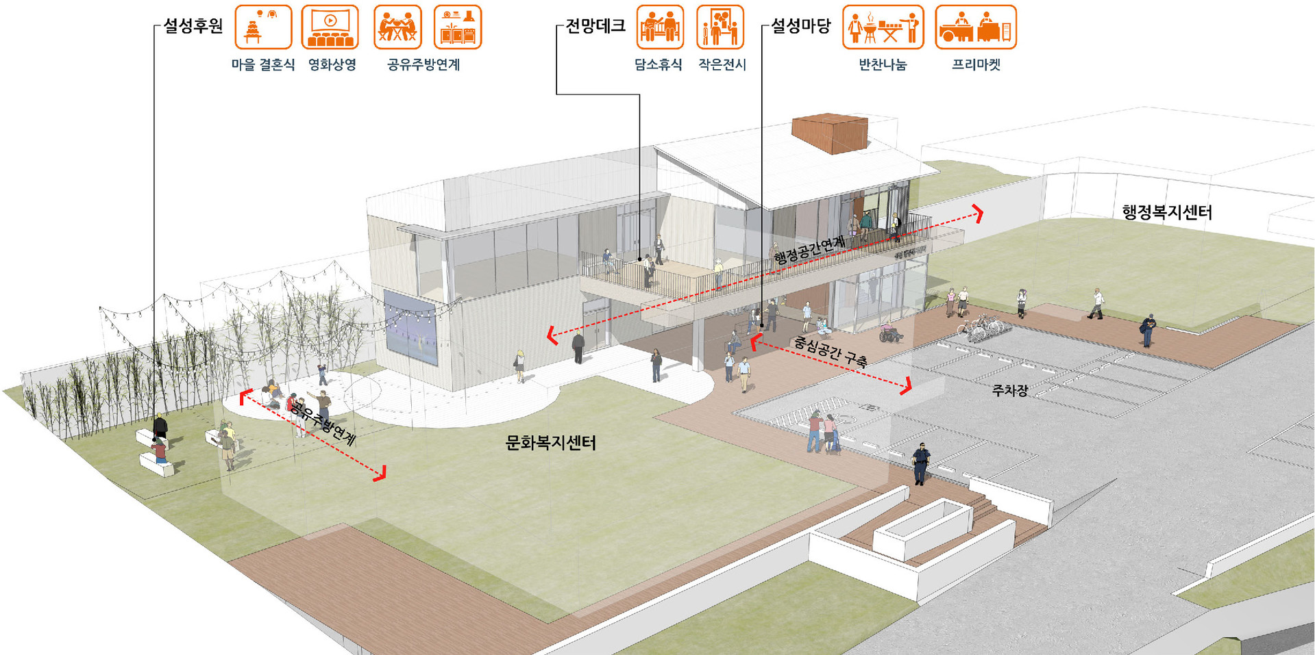 기초생활거점으로써 기존 건축물과의 조화와 연계를 통해 시너지를 창출하고,