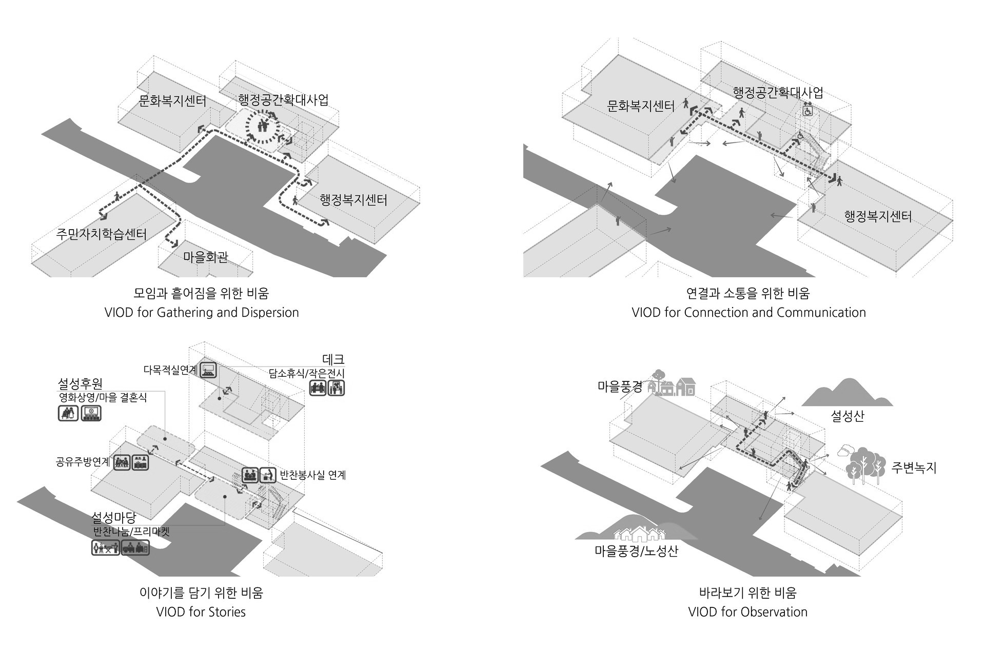 4. 바라보기 위한 비움 _ 중심축으로써 설성면 전체를 바라보고 지역을 인지할 수 있는 휴식공간을 제공하고, 장소의 역할과 정체성을 더욱 견고히 하고자 함.